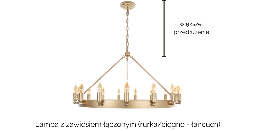Przedłużenie w lampach z kilkoma elementami zawiesia robimy przez połączenie ich w jednym punkcie