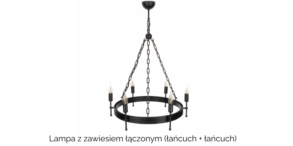 W lampach, które mają więcej niż jedno zawiesie stosujemy łańcuchy, które również można dopasować do wymaganej wysokości.