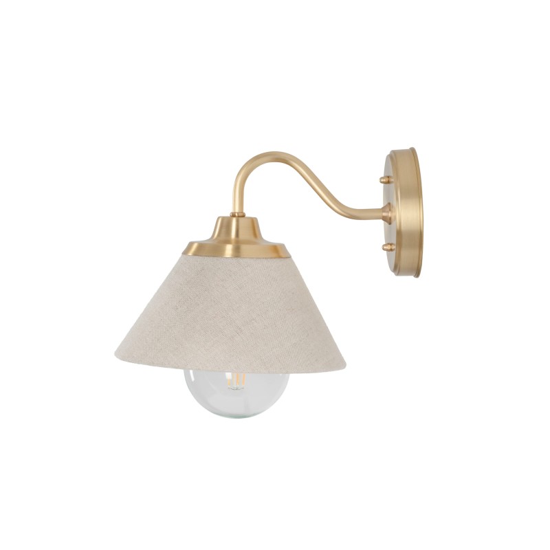 Kinkiet Nilo Classic to stylowe połączenie klasyki i naturalnych materiałów, które doskonale wpisze się w aranżacje w stylu retro, vintage lub rustykalnym. Metalowa oprawa w kolorze mosiądzu nadaje całości elegancji i ponadczasowego charakteru, a abażur wykonany z naturalnego lnu wprowadza ciepło i przytulność do wnętrza.