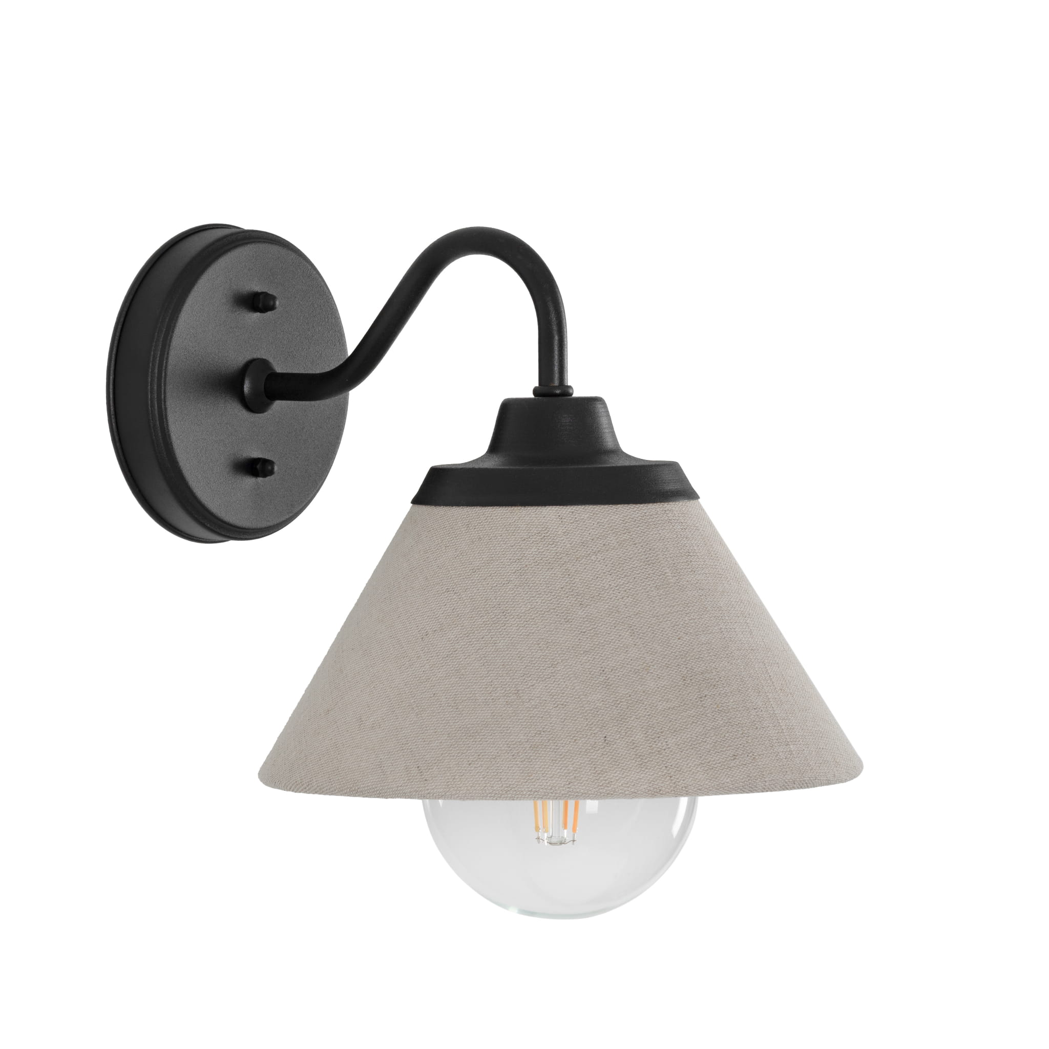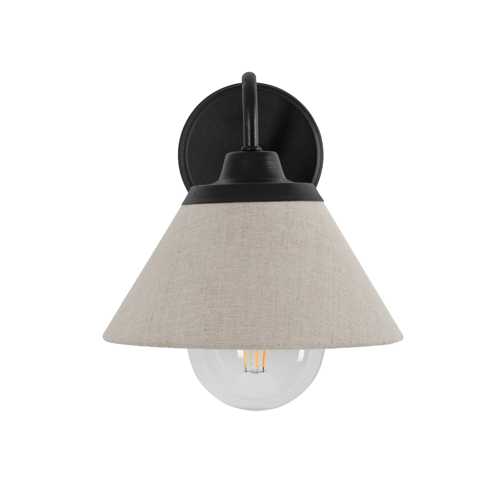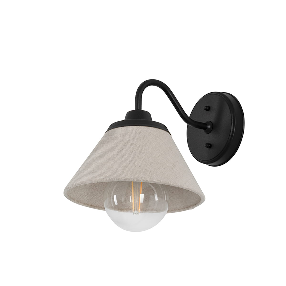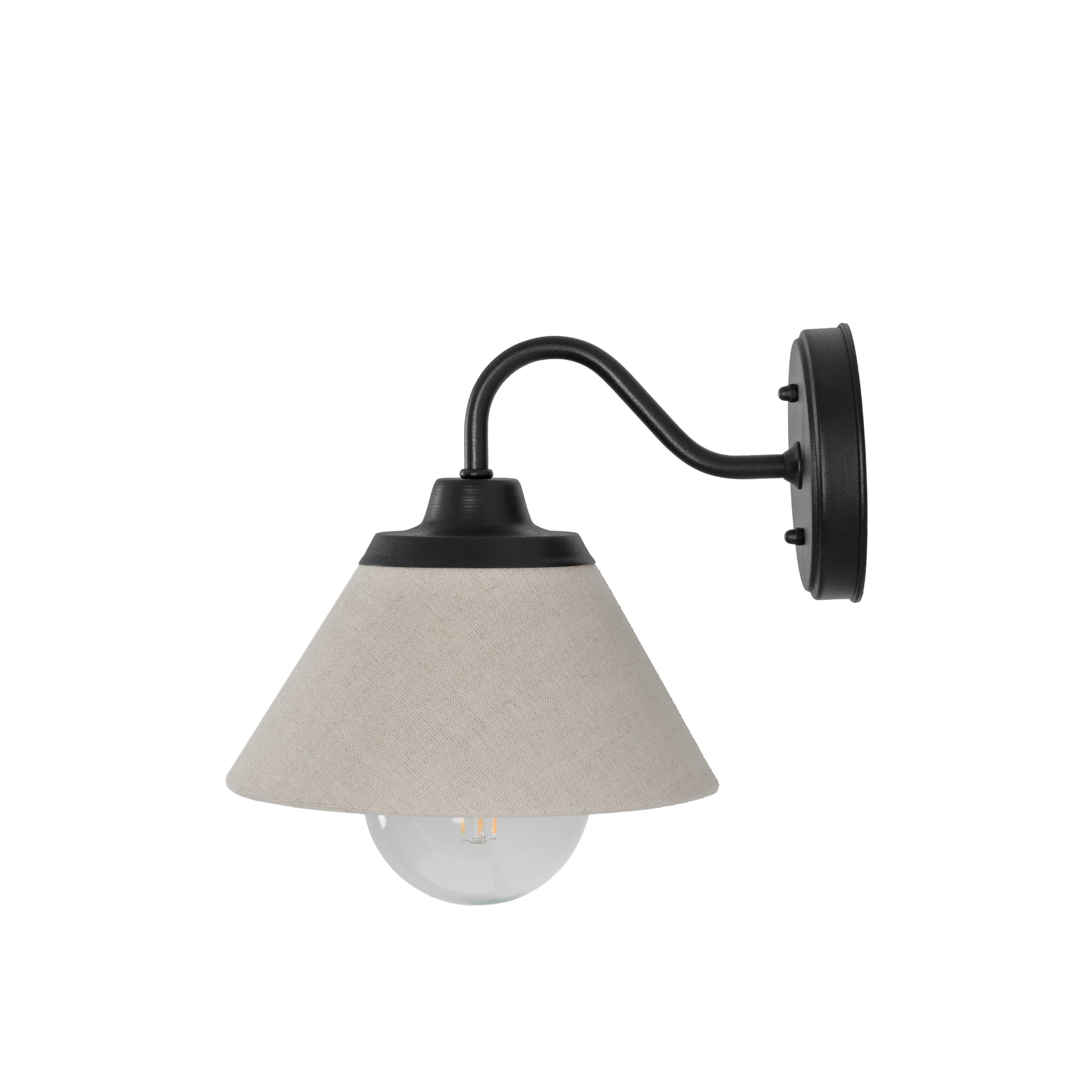 Sercem kinkietu jest abażur wykonany z wysokiej jakości, naturalnego lnu w subtelnym lnianym kolorze. Len to materiał szlachetny, który delikatnie rozprasza światło, tworząc w pomieszczeniu ciepłą i relaksującą atmosferę. Kontrastujące, czarne wykończenie metalowej oprawy nadaje całości nowoczesny i wyrazisty charakter.