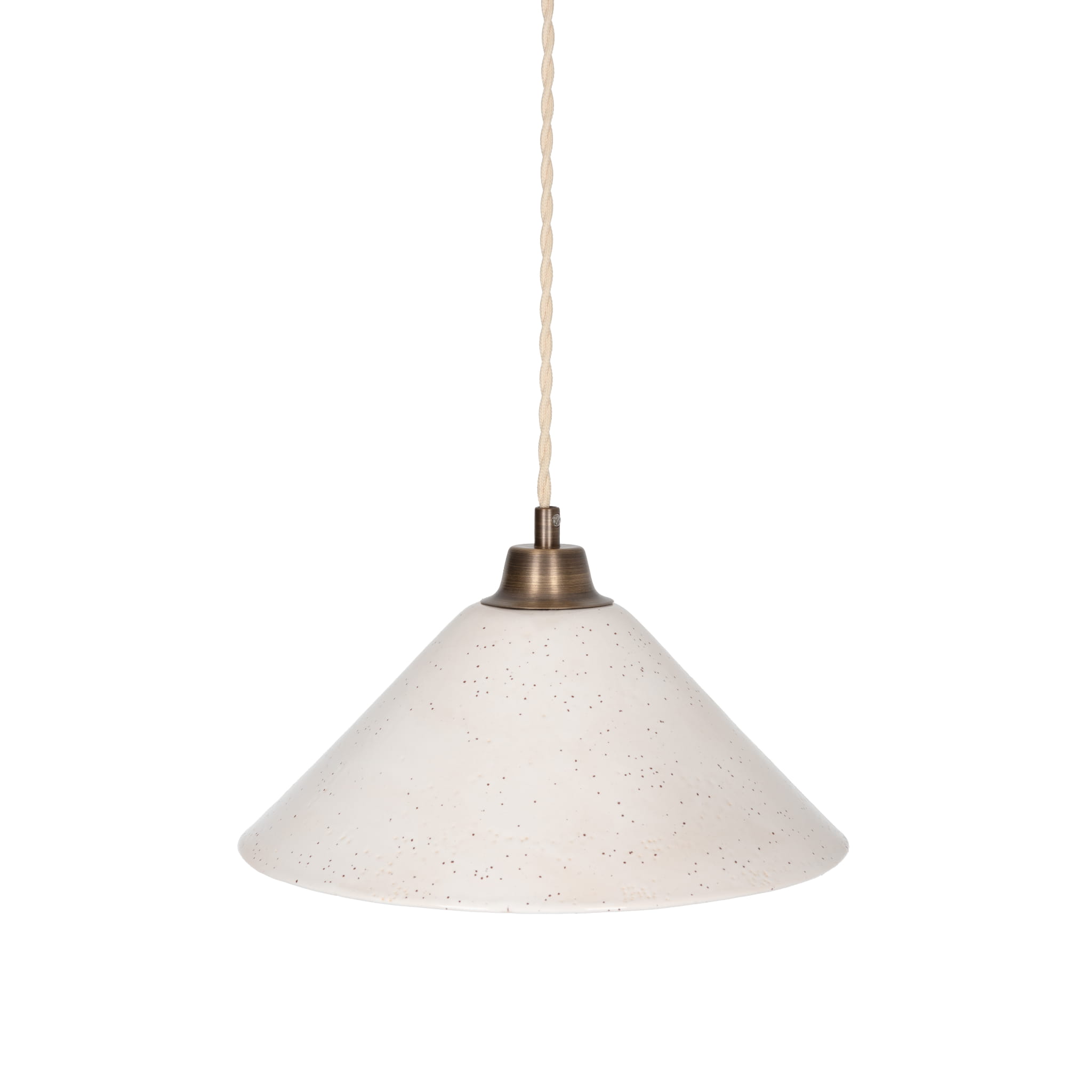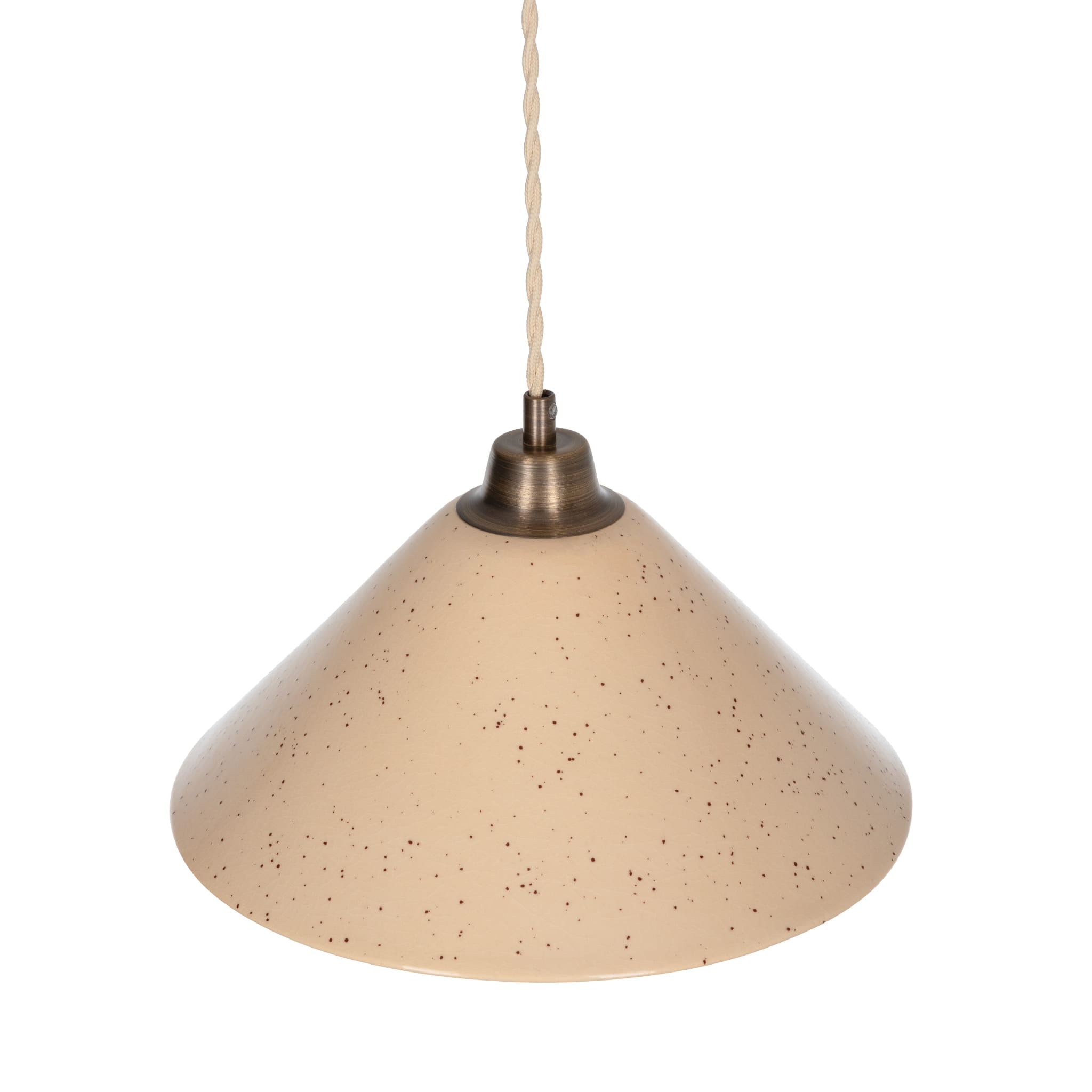 Ceramiczny Klosz: Szeroki, stożkowy klosz wykonany jest z wysokiej jakości ceramiki w kolorze kości słoniowej (Ivory)(dostępny również w innych kolorach). Jego powierzchnię zdobi delikatny, nakrapiany wzór, który podkreśla rzemieślniczy rodowód.