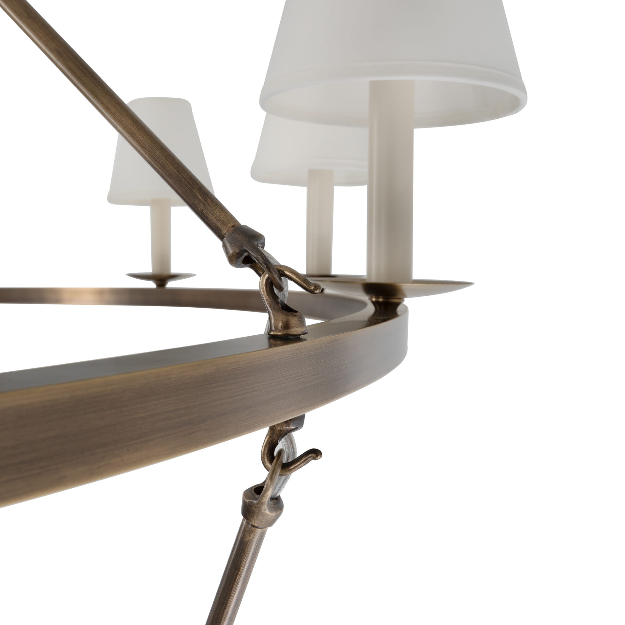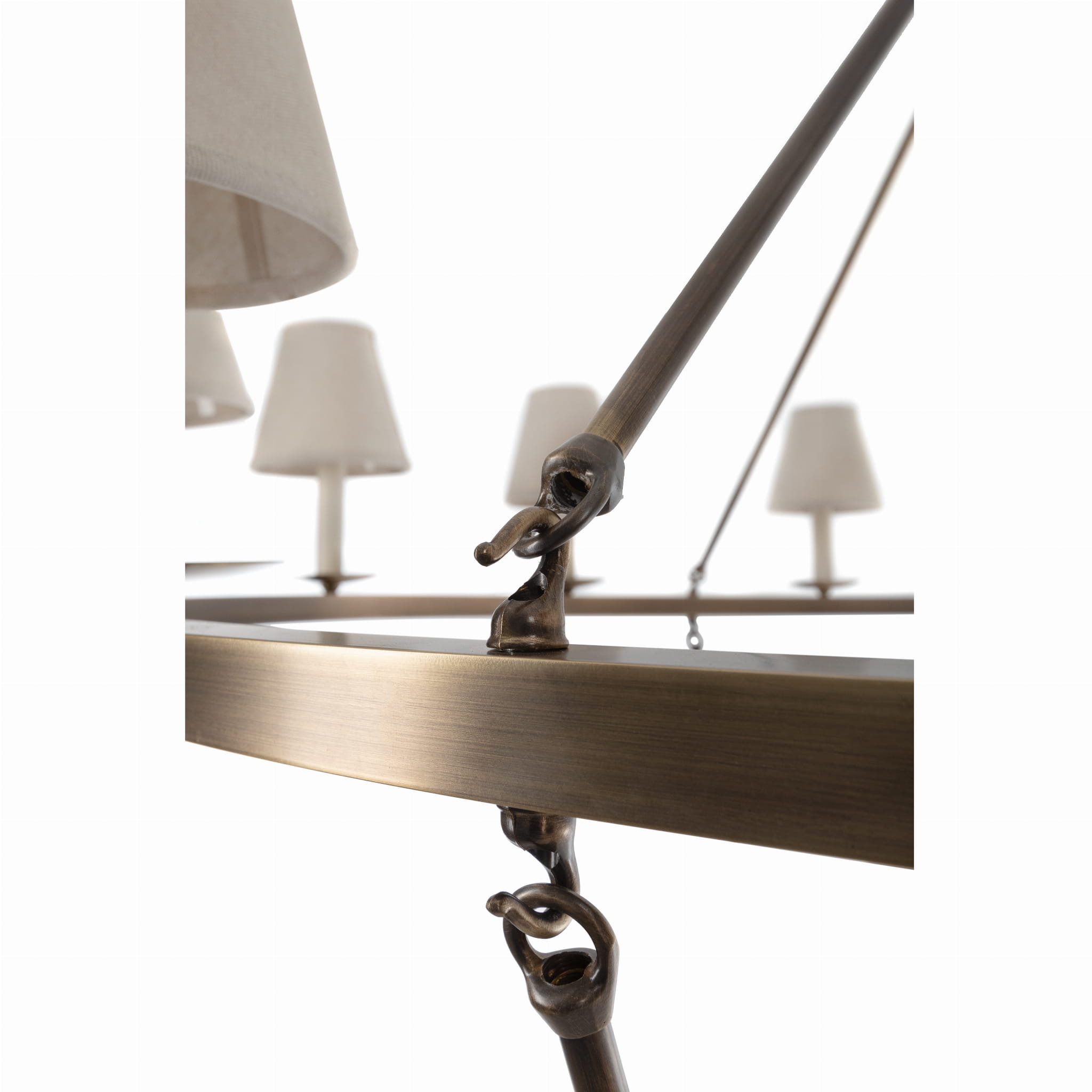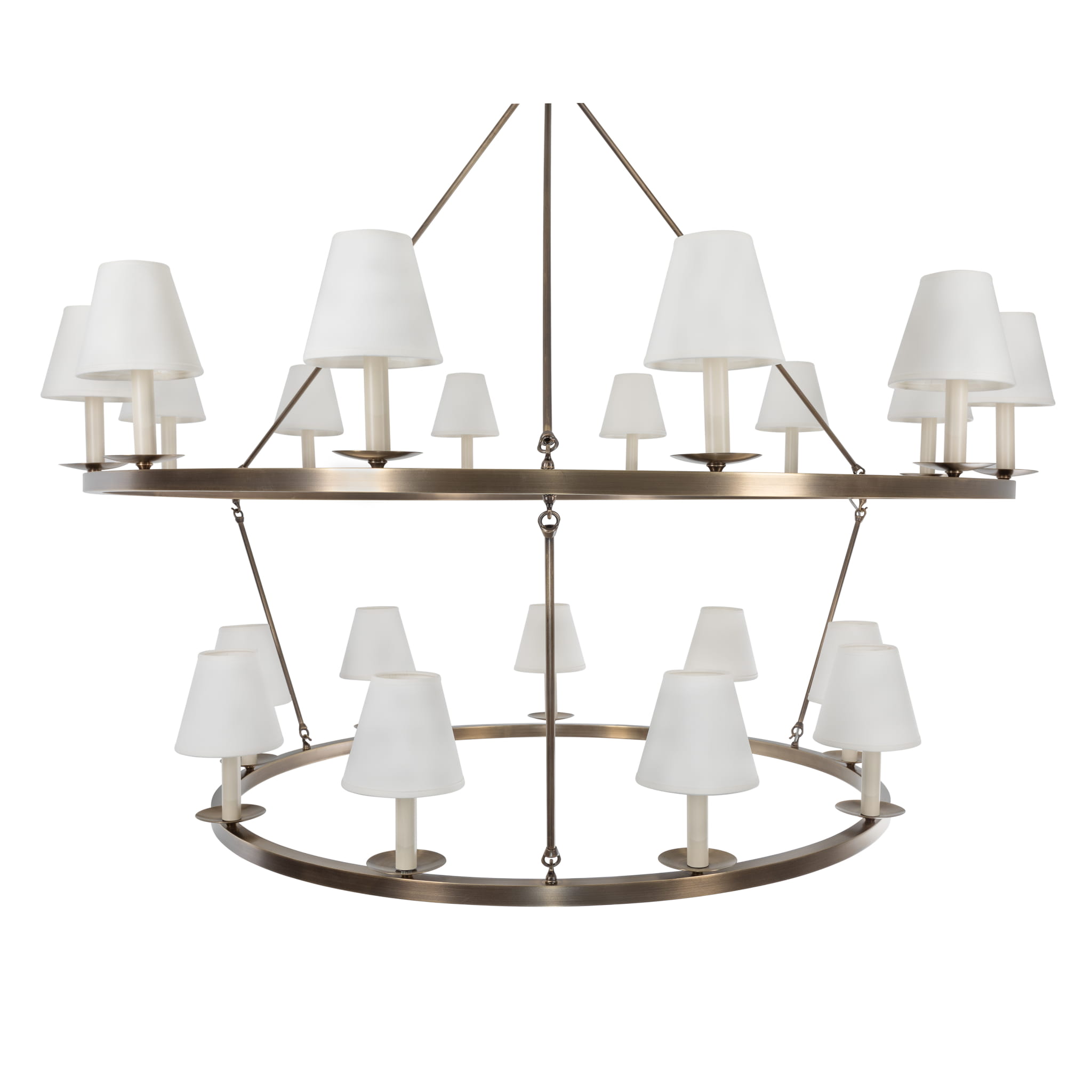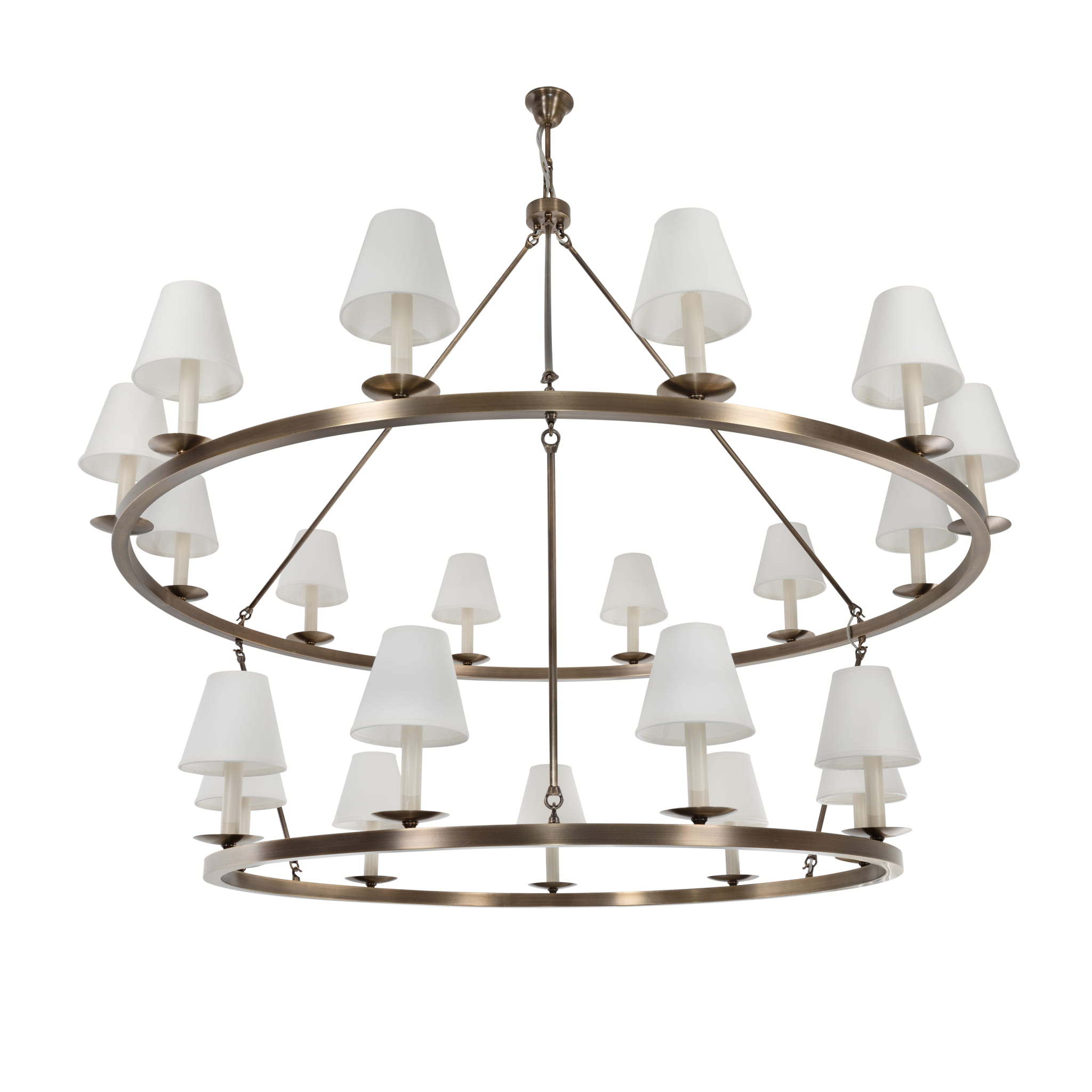 Aurora Double to okazały żyrandol wykonany z wysokiej jakości mosiądzu, który zachwyca architektoniczną konstrukcją i elegancką prostotą. Jego wyjątkowa, dwupoziomowa forma oparta na dwóch koncentrycznych kołach czyni go imponującym elementem dekoracyjnym do wysokich i przestronnych wnętrz.