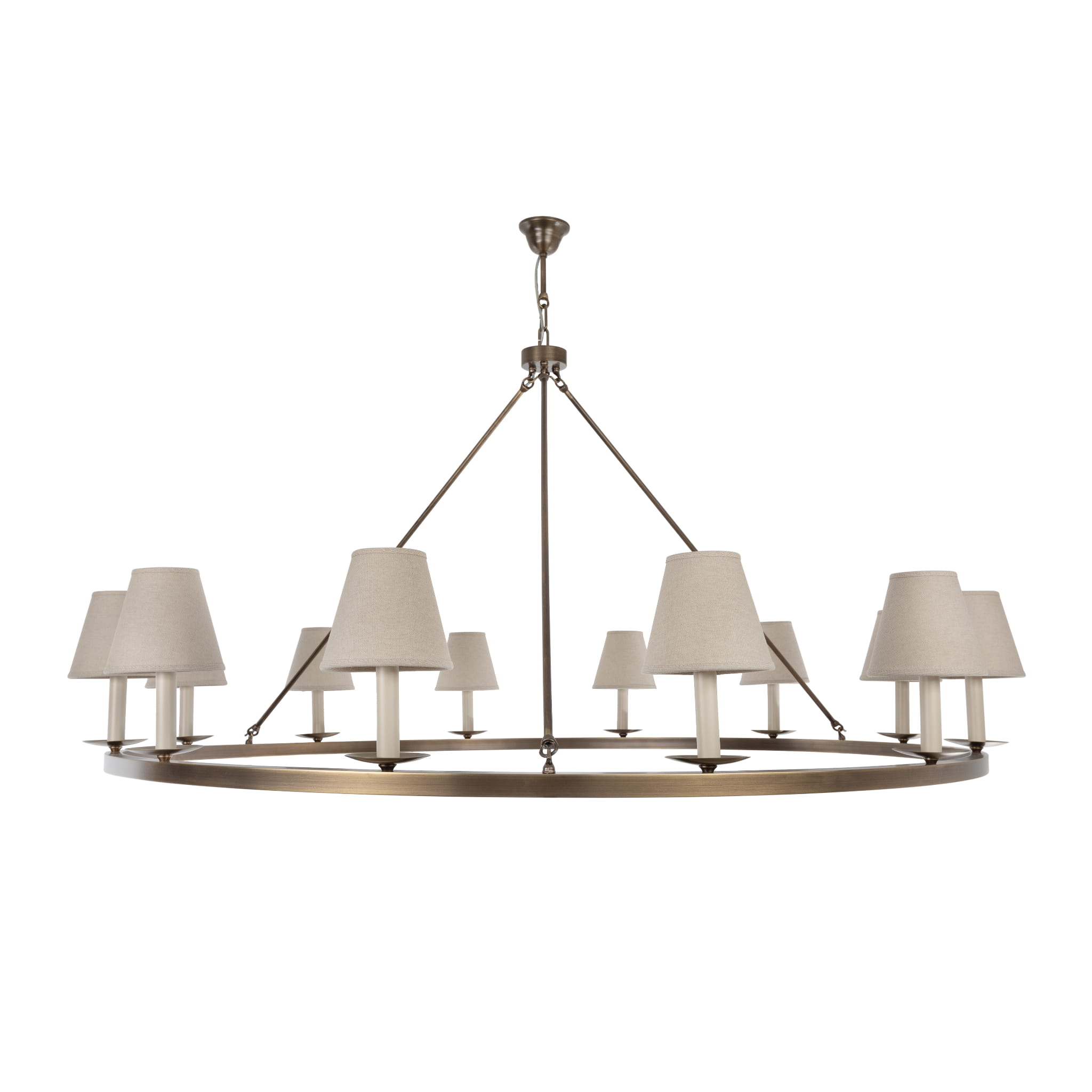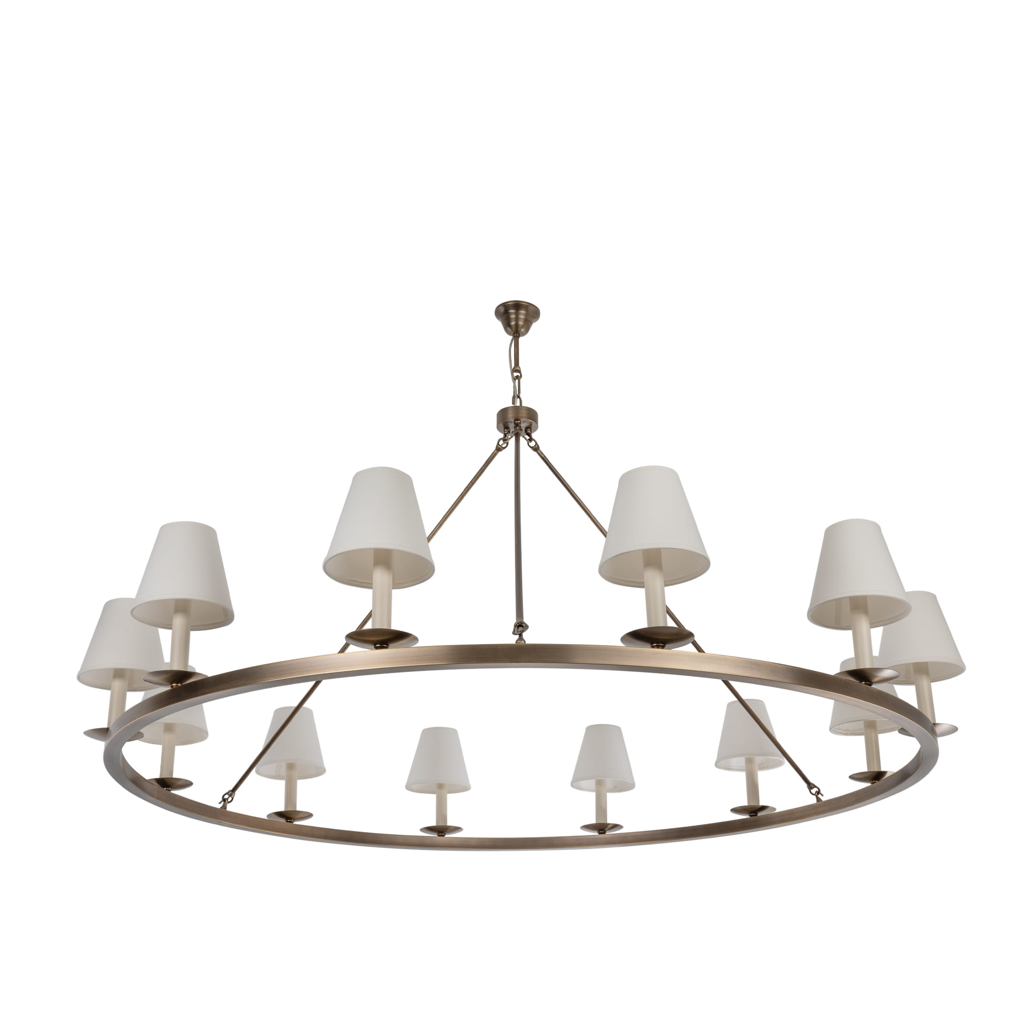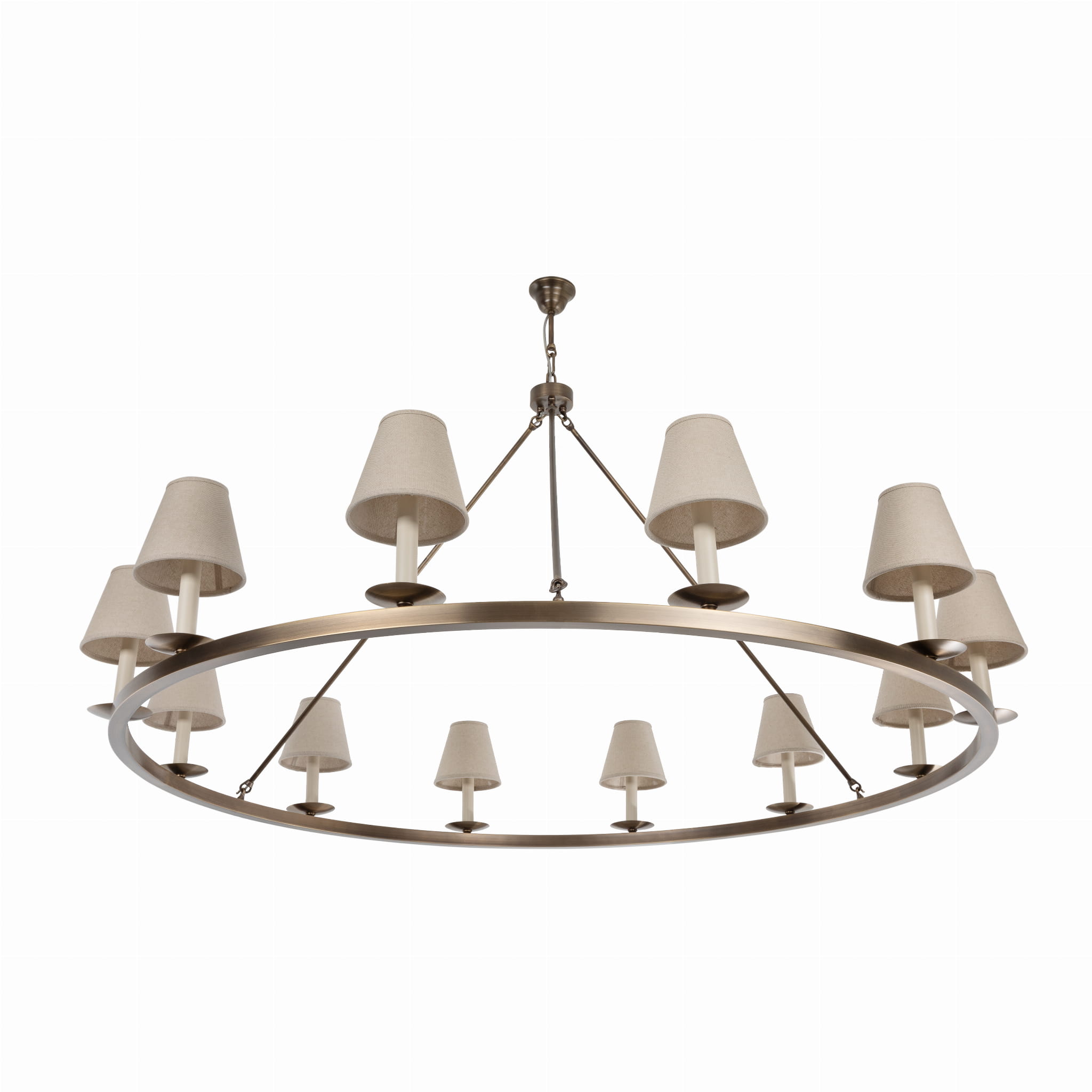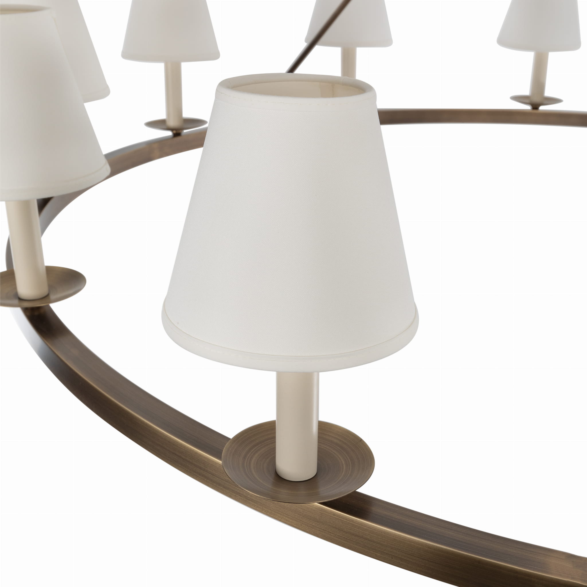 Okrągła konstrukcja żyrandola tworzy symetryczną, harmonijną formę, która świetnie prezentuje się nad dużym stołem lub w centralnej części salonu.