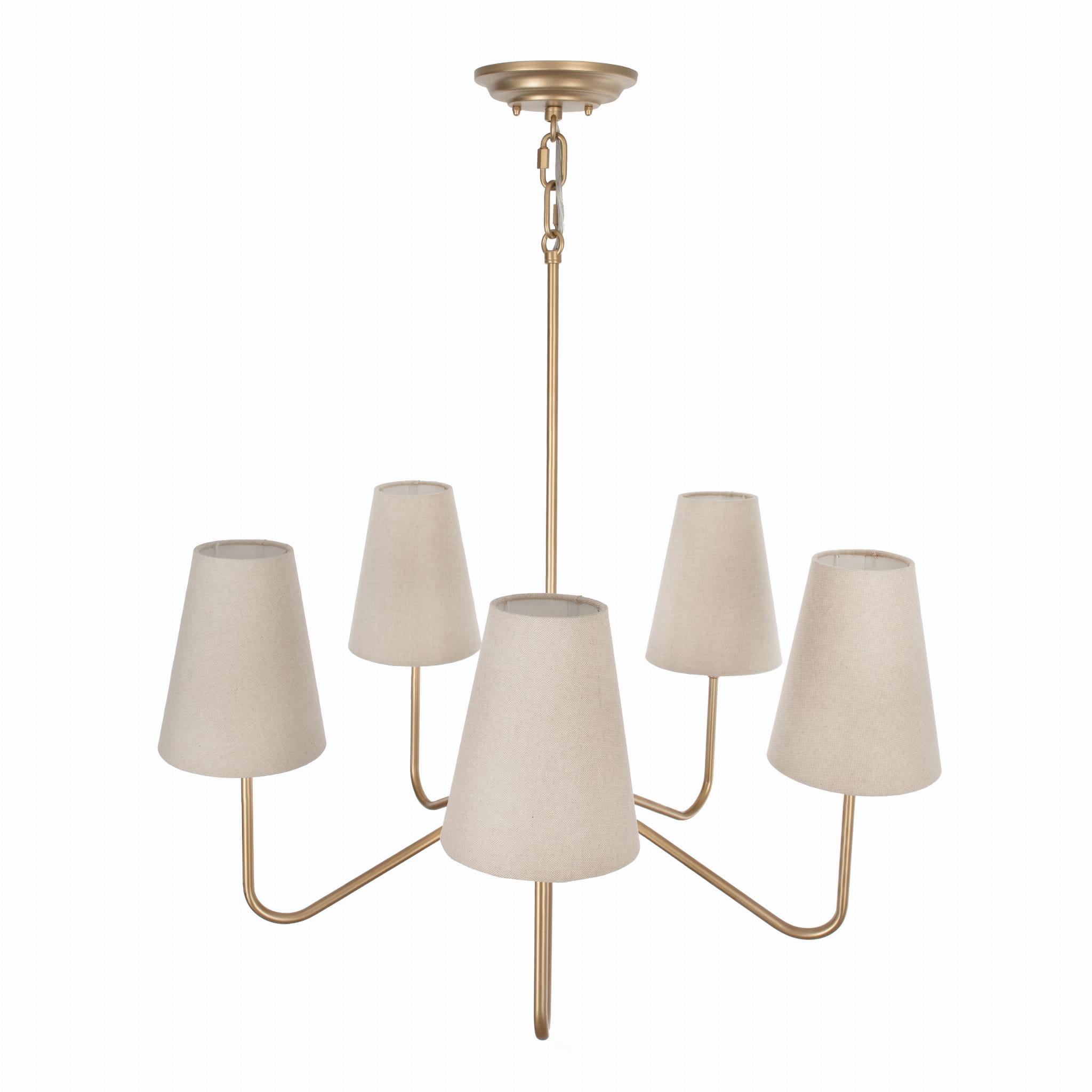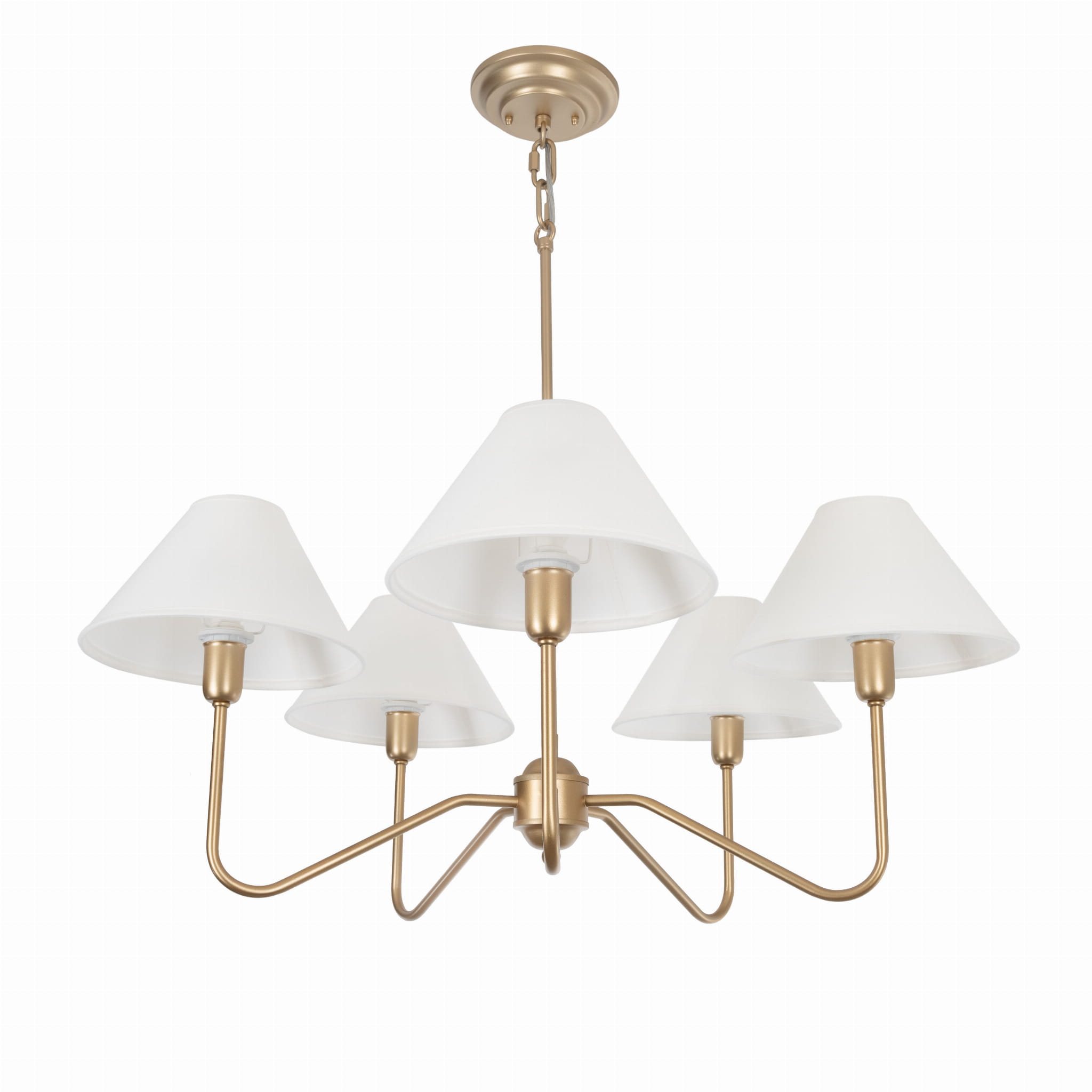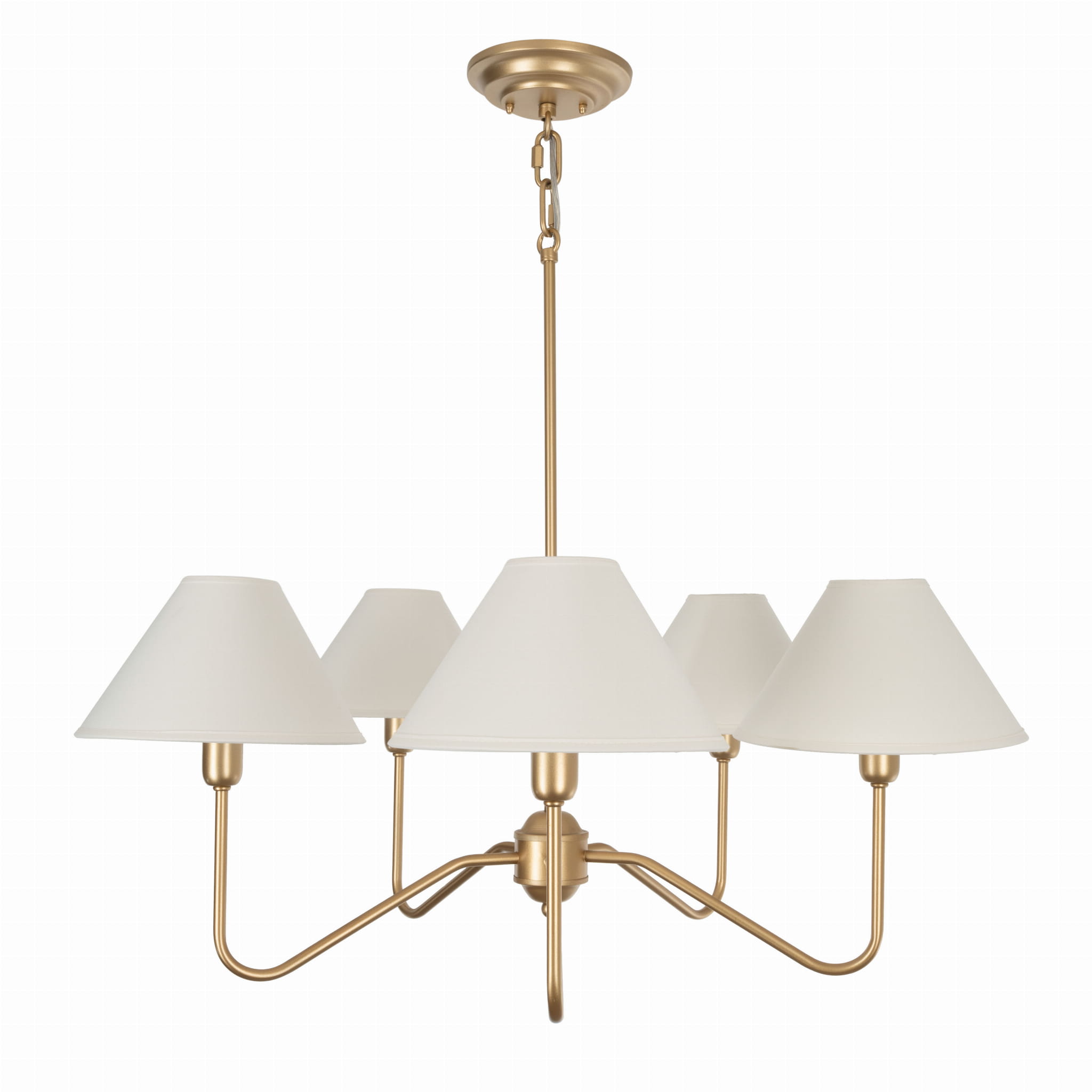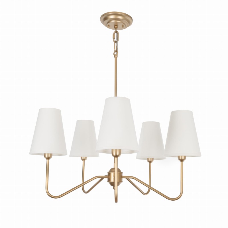 Złoty żyrandol z serii SIMPLE PLUS to doskonałe połączenie klasyki z nowoczesnym stylem inspirowanym modern farmhouse. Jego elegancka, a zarazem subtelna forma, wprowadza do wnętrza lekkość i harmonię, nie dominując przestrzeni. Dzięki sześciu źródłom światła i abażurom, lampa tworzy przyjemną, ciepłą atmosferę, idealną zarówno do większych pomieszczeń, jak i bardziej kameralnych aranżacji.